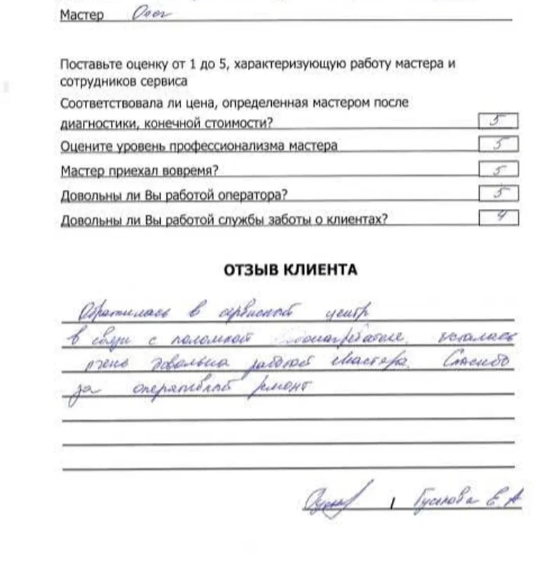 Мы уточним детали и согласуем удобное время для визита мастера